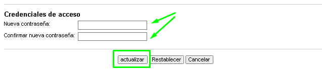 Una vez haya hecho click en el enlace recibido en su correo electrónico, será redirigido al formulario, en donde podrá crear una nueva contraseña. Luego haga click en Actualizar