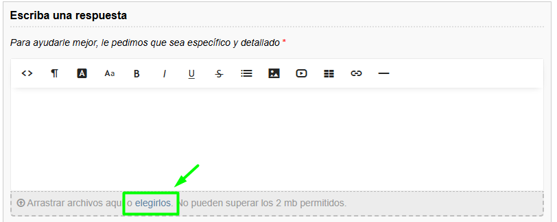 NOTA: Sólo se admiten archivos de hasta 2MB. Revise el tamaño de dichos adjuntos antes de intentar cargarlos