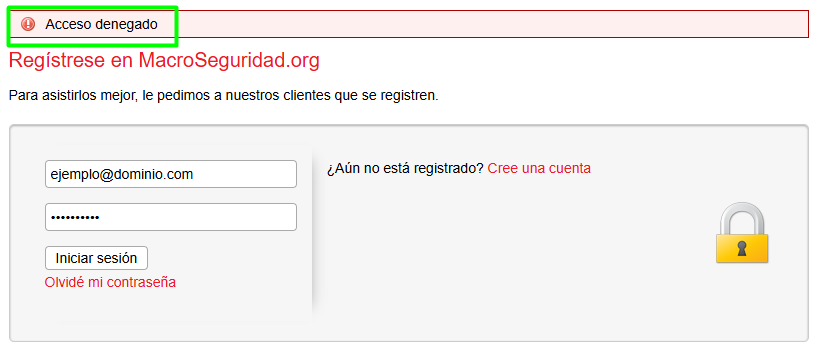 Si ingresó credenciales erróneas aparecerá este error.