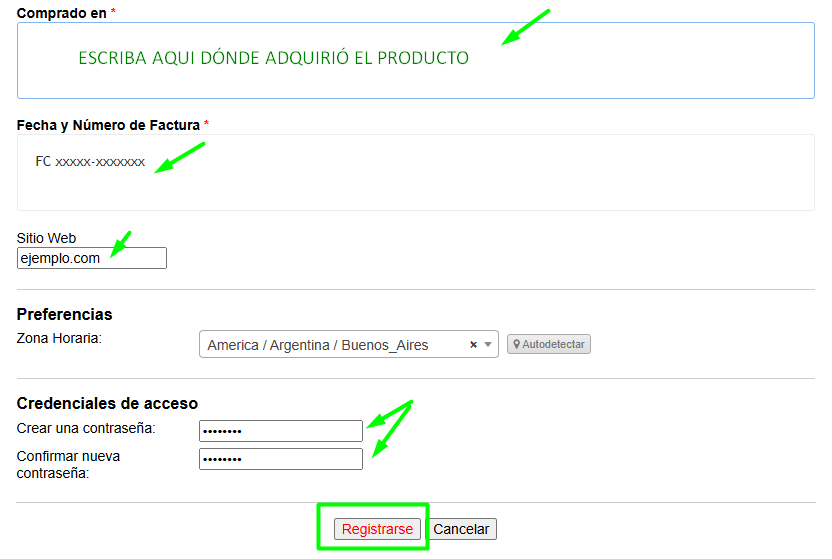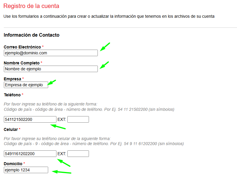 Ingrese sus datos tal como se muestra en las siguientes imágenes,(respetando el formato de los números de teléfono):