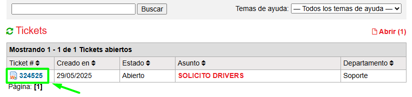 Haga click en el número de ticket que desea responder.