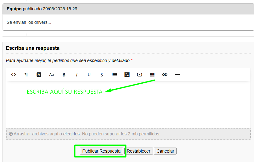 Si desea responder, escriba su respuesta en el campo correspondiente y presione Publicar respuesta